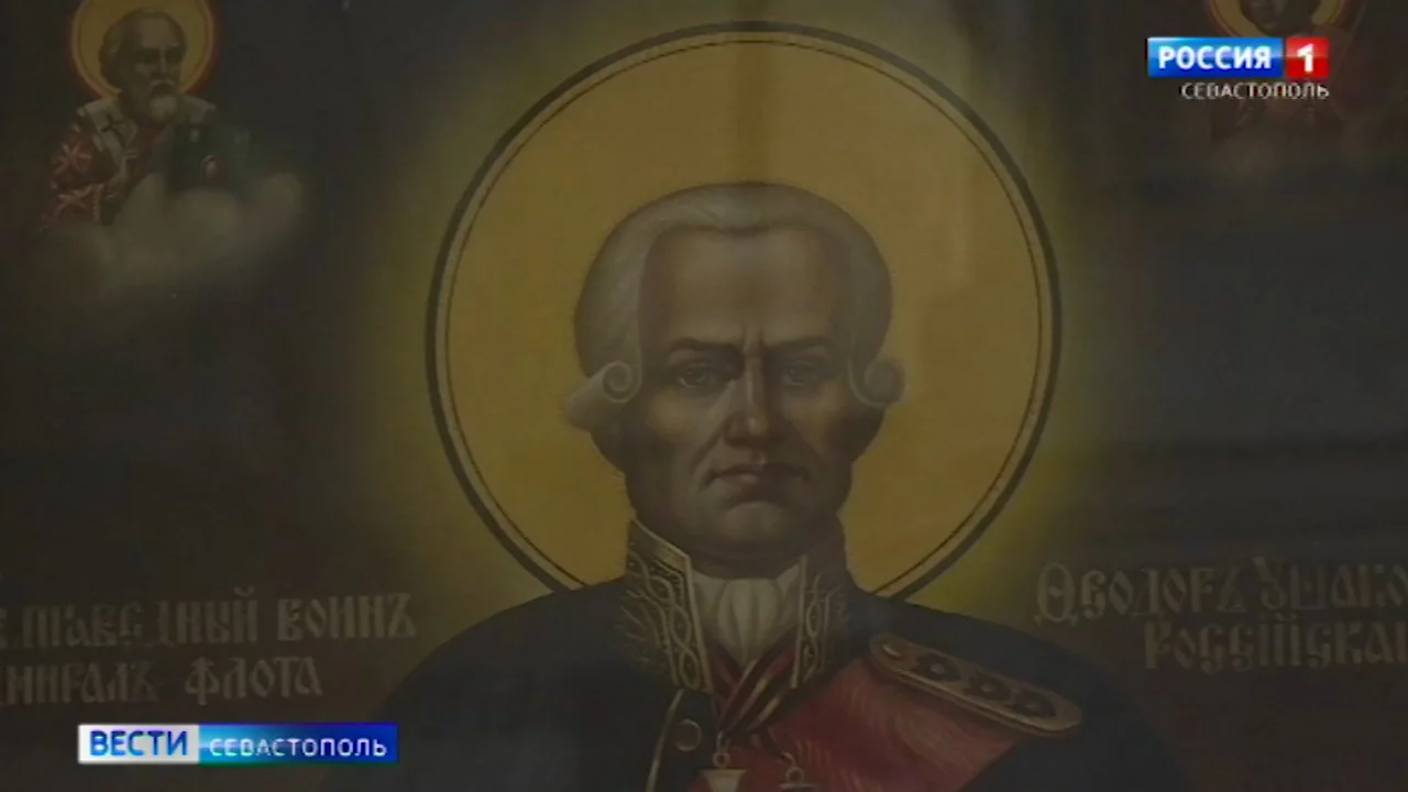 Перед иконой святого Фёдора Ушакова провели благодарственный молебен. Образ не пострадал при пожаре в штабе Черноморского флота после прямого попадания ракеты. Верующие пришли во Владимирский собор на Центральном холме, чтобы своими глазами увидеть нетронутый огнём облик адмирала. Об истории этой