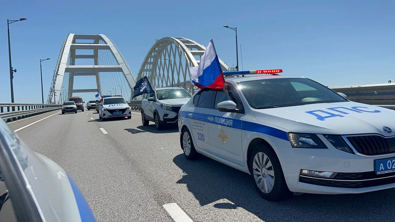 На Крымском мосту полицейские приняли флаг, прошедший эстафету по России