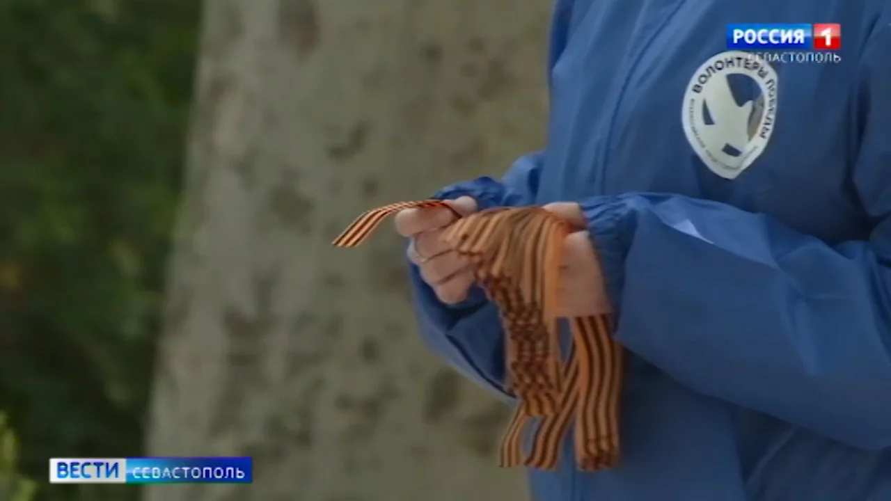 В Севастополе более 200 добровольцев раздают Георгиевские ленточки