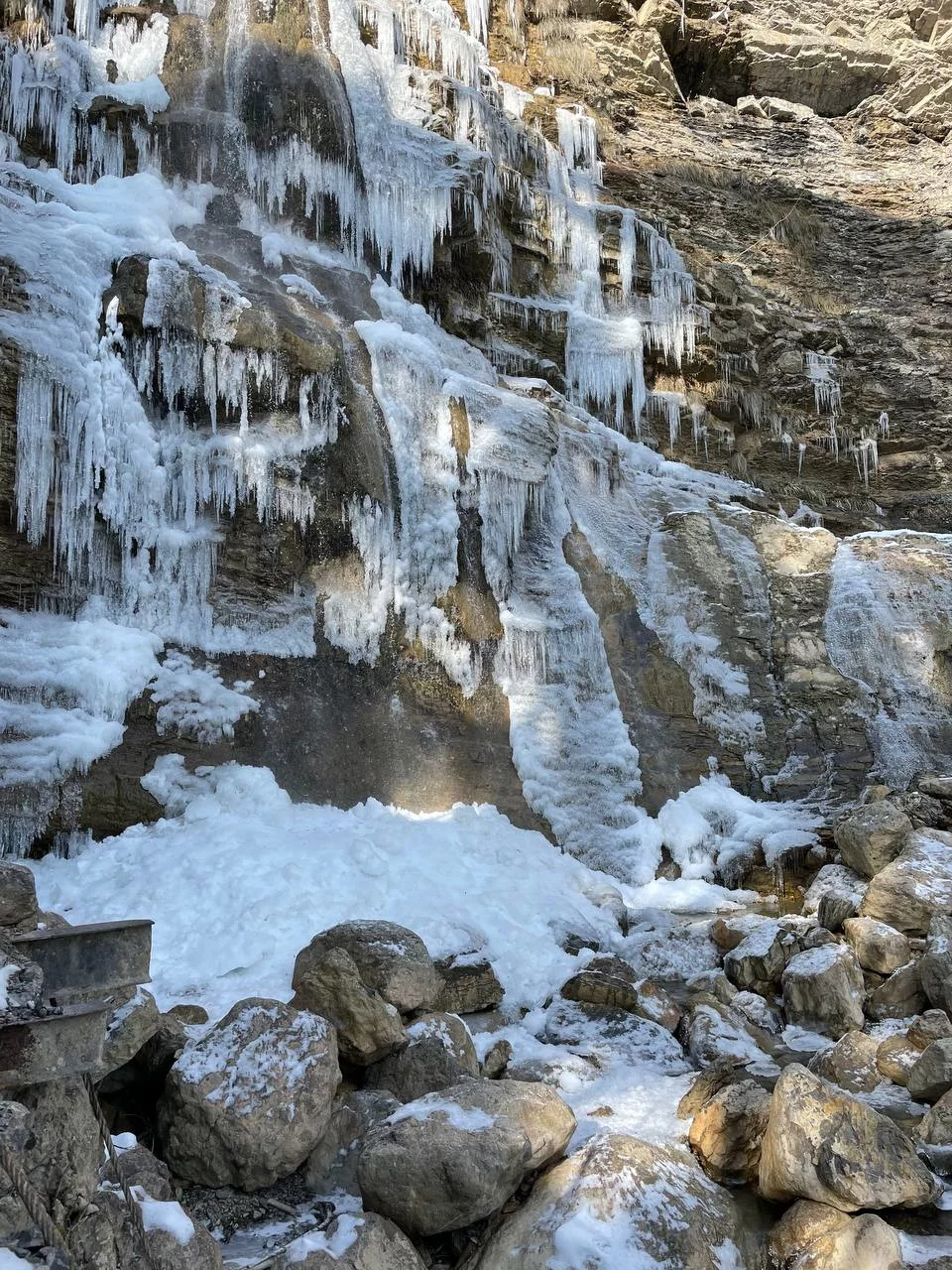 Из-за сохраняющихся продолжительное время минусовых температур в районе Ай-Петри, практически замёрз самый высокий водопад Крыма — Учан-Су.